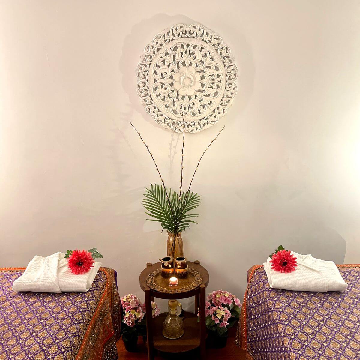 Al ingresar a SasiThai, los visitantes son recibidos por un ambiente cálido y acogedor, diseñado para inducir una sensación de paz y relajación. La decoración está inspirada en la cultura tailandesa, con elementos que evocan la serenidad de aquel país. La iluminación suave y los aromas de aceites esenciales crean una atmósfera propicia para el bienestar.